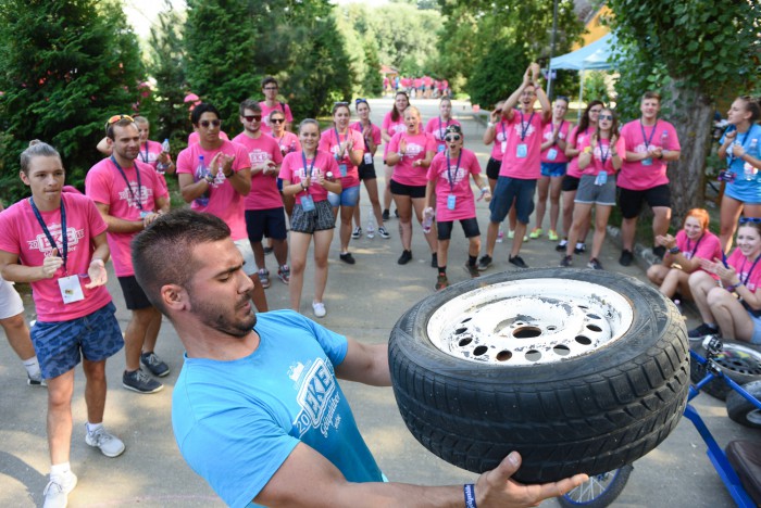 Véletlenszerűen összeállított színcsoportokban versengtek a színek háborúja elnevezésű sorversenyen már érkezésük napján az eszterházys gólyák Tiszafüreden. A fiatalok csapatmunkára építő- és vicces feladatokon keresztül is összemérhették ügyességüket.